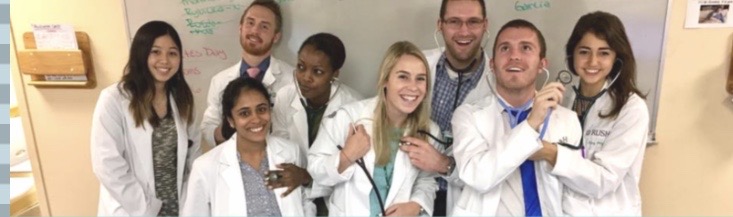 A photo from the clinic a few years ago, featuring first-year med students from Rush University.